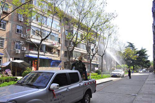 4月14日,物业管理中心对住宅区内绿化树木喷洒农药,开展树木防病防虫工作。