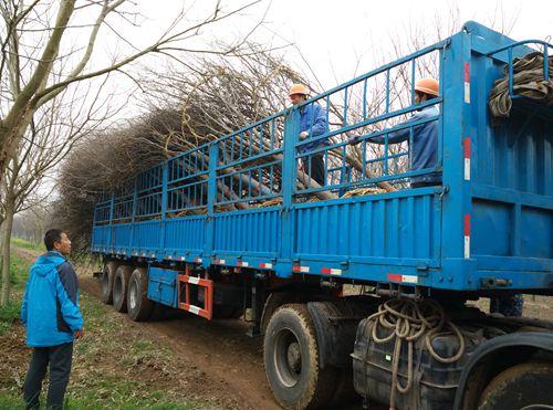 在苗木的装运过程中,选树小组从苗木的挖掘,土球的尺寸,草绳缠绕的质量,起吊、装车、捆绑等各个环节进行全面跟踪,确保土球质量、苗木树形等完好无损。