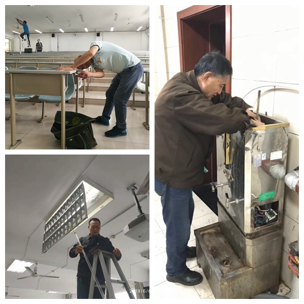 活动中,维修服务中心根据教务处相关部署要求,积极落实,对考场各项保障工作进行了梳理和安排,对考场教室进行了认真细致地检查和维护。